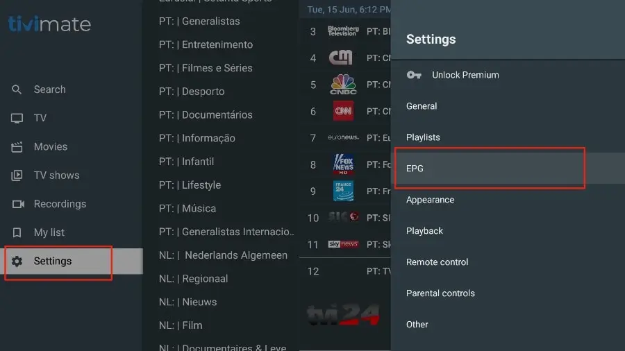 If you don't see an EPG enabled in the TiviMate application, consider enabling it in the application settings.